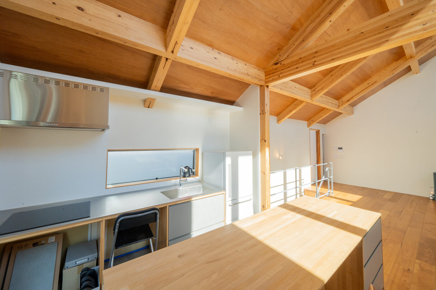 シンプルで無駄を削ぎ落とした造作キッチンは、素箱の思想そのものを象徴する存在です。
