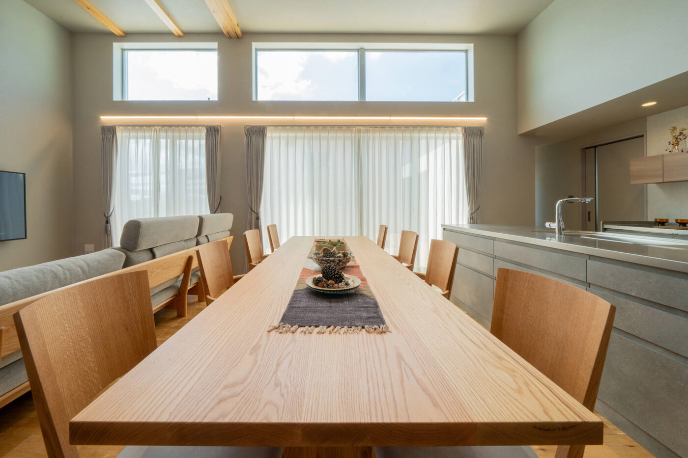 ダイニングには存在感のある大きなテーブルを配置し、暮らしの中心としての役割を持たせました。