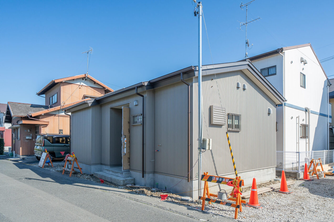 1週間ぶりに現場を見に行くと、家の中も外もかなり工事が進んでいて、思わず「もうここまで進んだんだ」と声が出るくらい、印象が変わっていました。