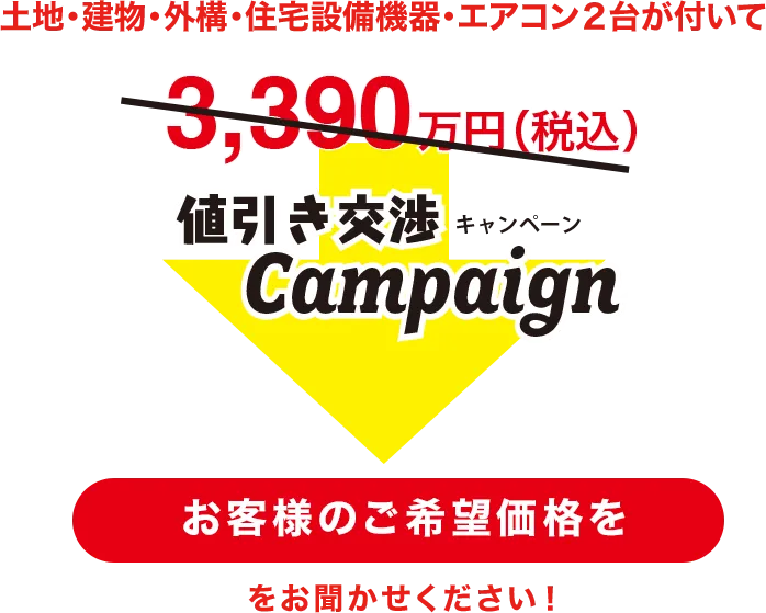 期間中に販売会場にご来場いただいた方には、なんと!住宅価格を現地で直接交渉できる特別な機会をご用意しました。