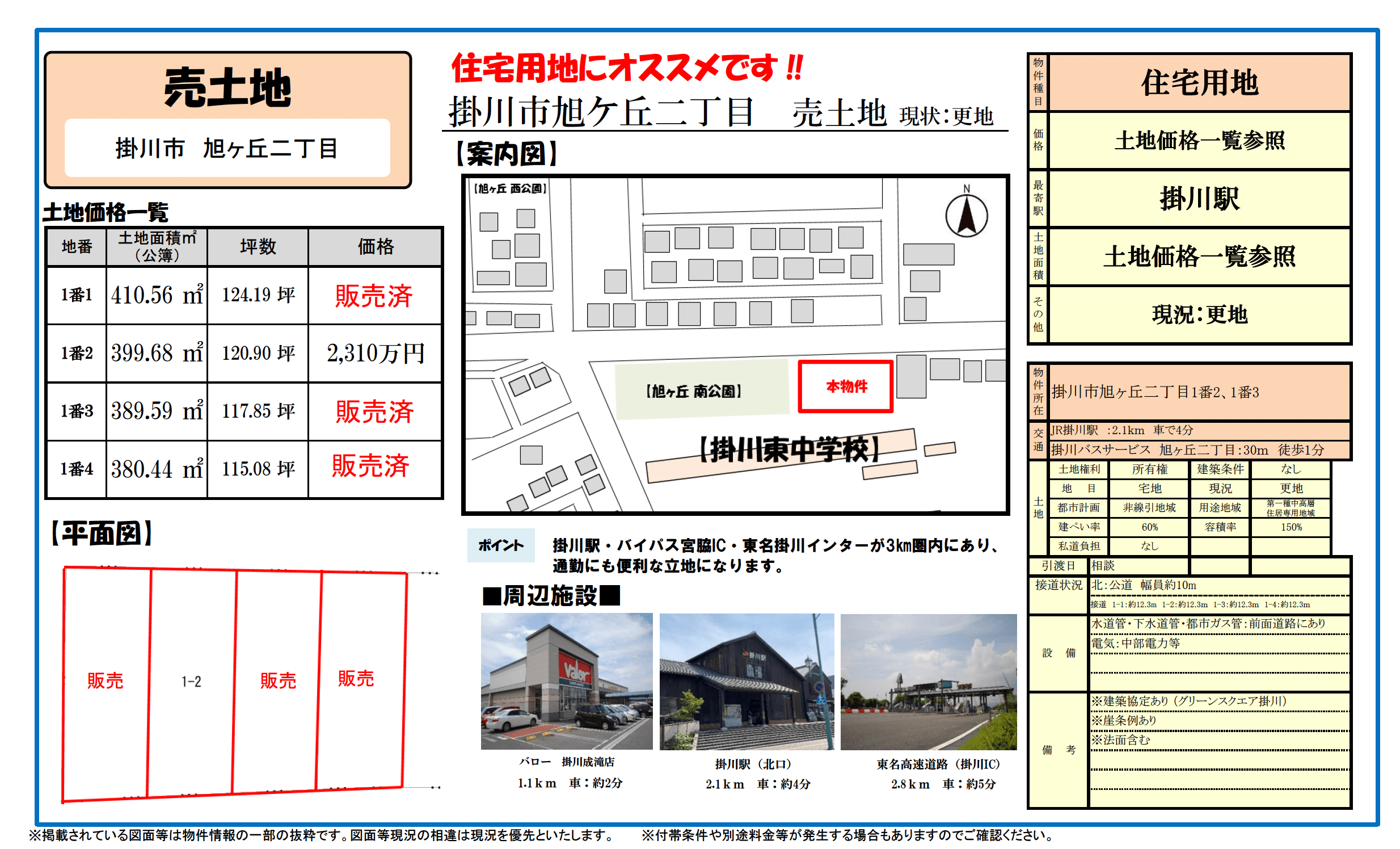 | 備考 | ※建築協定あり(グリーンスクエア掛川) ※崖条例あり ※土地面積に法面部分含む |