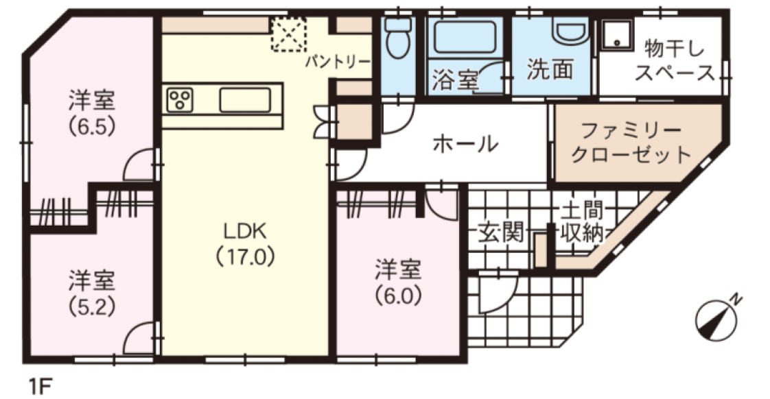 家族が同じフロアで生活するため自然にリビングに集まり家族団らんを楽しめます。